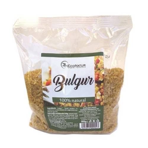 Bulgur, 500 g, Econatur - Produs natural sanatos Bulgurul, Econatur, este un ingredient uşor de preparat, care poate fi folosit în numeroase reţete. Apărut pentru prima dată în zona mediterană, bulgurul a fost folosit cu precădere şi în Orientul Mijlociu, iar în prezent este consumat în multe alte tări. Cunoscut în principiu ca unul din ingredientele de bază din tabbouleh, bulgurul poate fi folosit în numeroase alte reţete. Este un ingredient versatil şi uşor de preparat. Ingrediente Bulgur, Econatur: Bulgur*. *Acest produs nu conţine şi nu este alcătuit din organisme modificate genetic. Bulgur, 500 g, Econatur