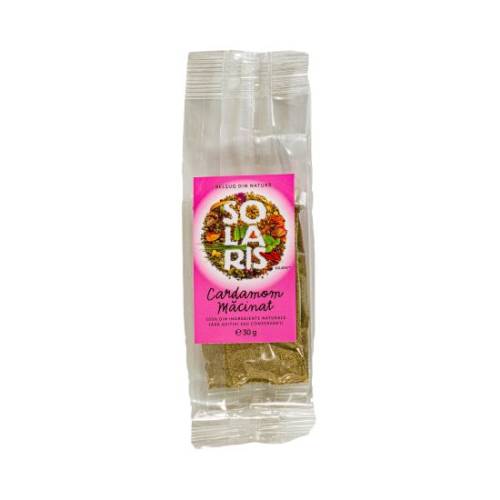 Cardamom macinat, o mirodenie cu aroma de eucalipt, citrice si camfor, cu un miros fin, misterios. Cardamomul are gust dulce si usor picant si se foloseste adesea in bucataria indiana si in cea scandinava. Invioreaza intregul organism si improspateaza respiratia. Totodata, cardamomul aduce beneficii importante pentru sistemul digestiv.