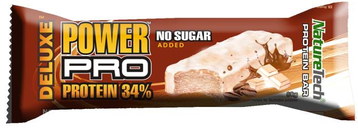 Baton proteic in invelis de glazura alba Power Pro DELUXE 34% proteina, cu aroma mocca....